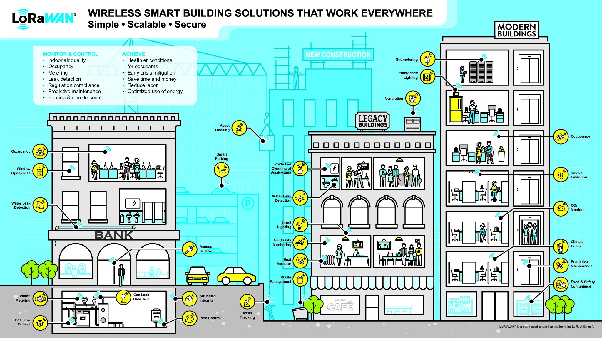 LoRaWAN can be easily integrated into existing building systems, making it a good choice for retrofitting older buildings with modern controls.